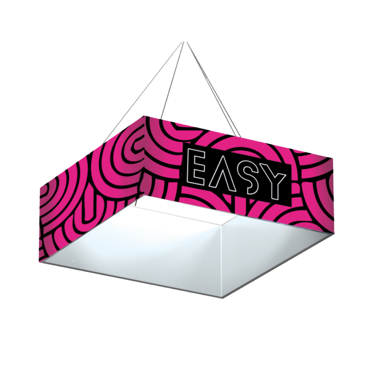 Enseigne carré en structure aluminium disponible en 3 tailles. Visuel recto verso sur housse en tissu. Légère et facile à transporter.