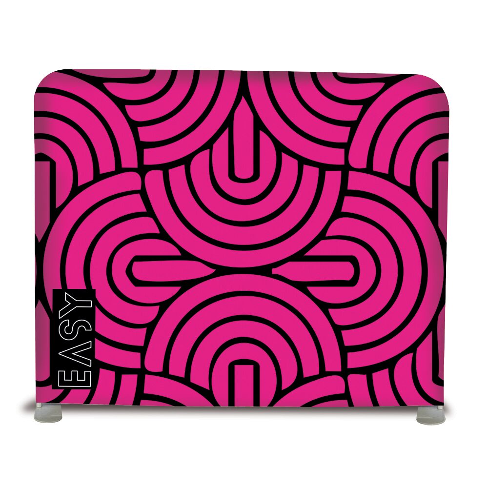 Mur d’image autoporté, léger et modulable, disponible en 6 tailles (2m à 6m), structure tubulaire facile à monter et transporter. visuel tissu recto verso