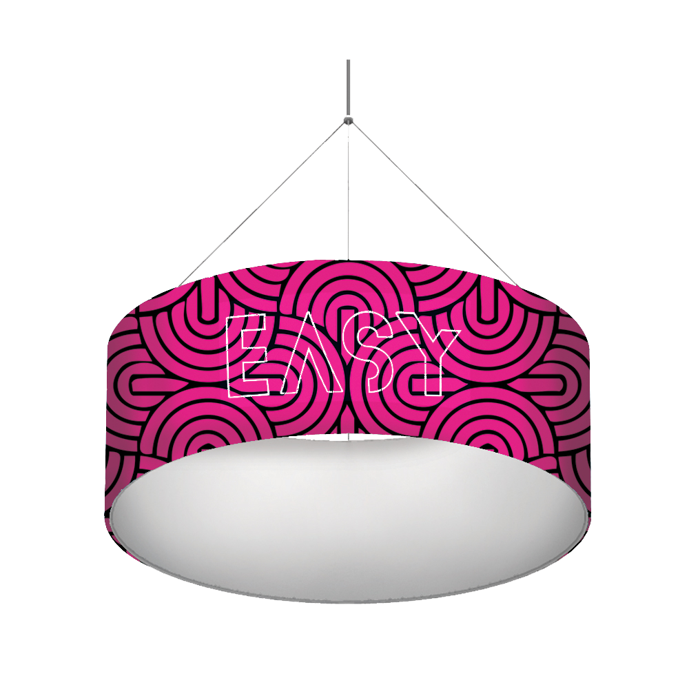Enseigne circulaire suspendue, structure tubulaire en aluminium, disponible en 3 diamètres, avec hauteurs adaptées pour un impact visuel optimal. Légère et facile à transporter