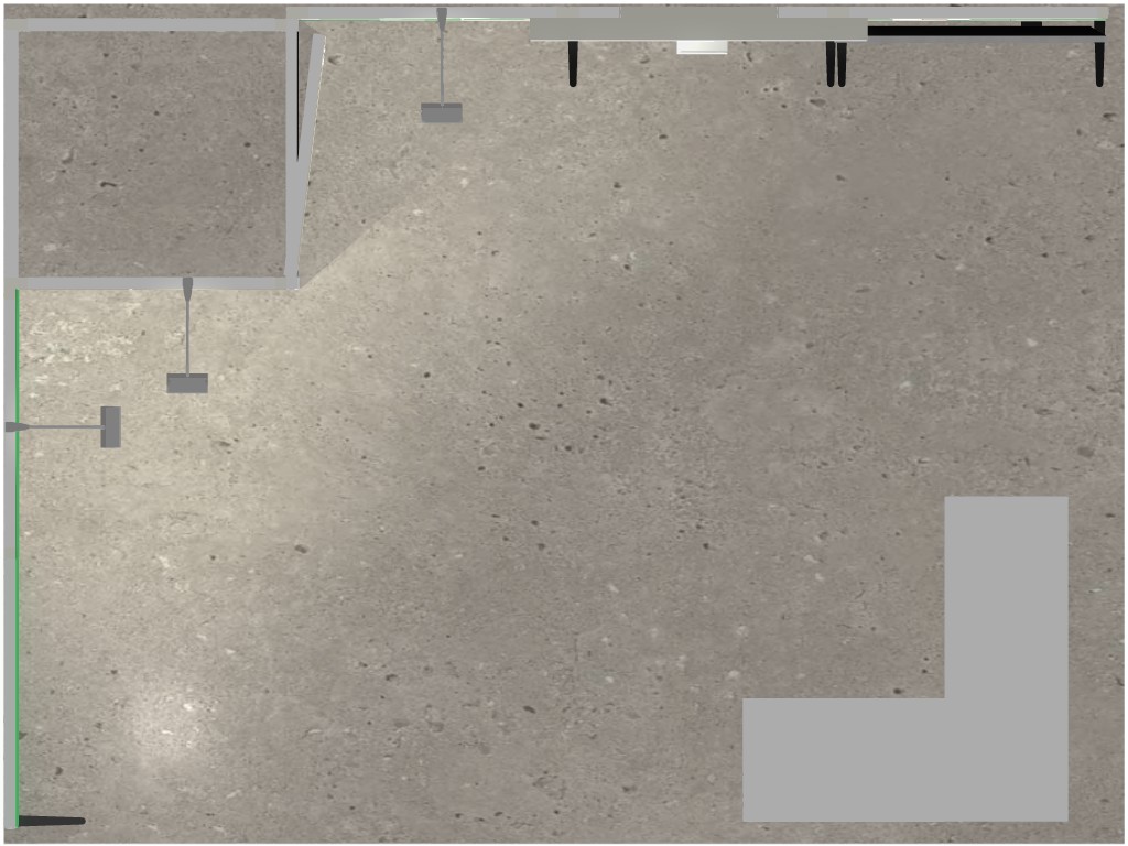 Stand de 18m2 ouvert sur 1 côté, avec 12m de cloison, une grande réserve au centre du stand, un comptoir lumineux, enseigne lumineuse et des spots LED, (Ecran en option).